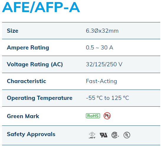 - Features / BenefitsFast-Acting fusesLead-Free RoHS CompliantApplicationsTelecom PowerServer Power 0.5-30A/250V 6.3*32mm...